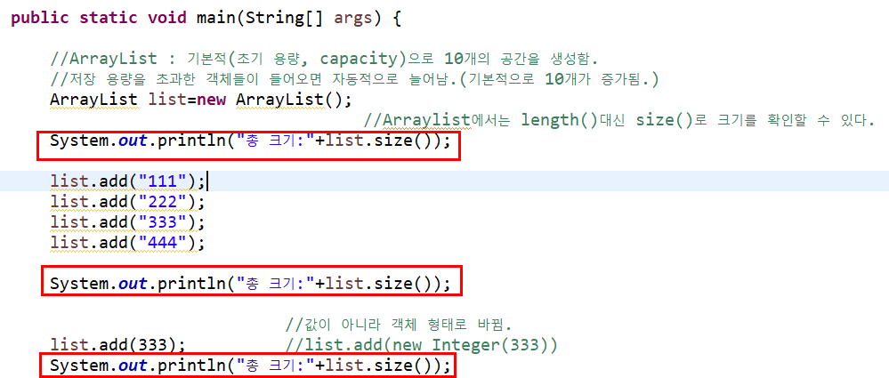 -자바에서는 객체 배열을 구현한 ArrayList를 많이 활용함