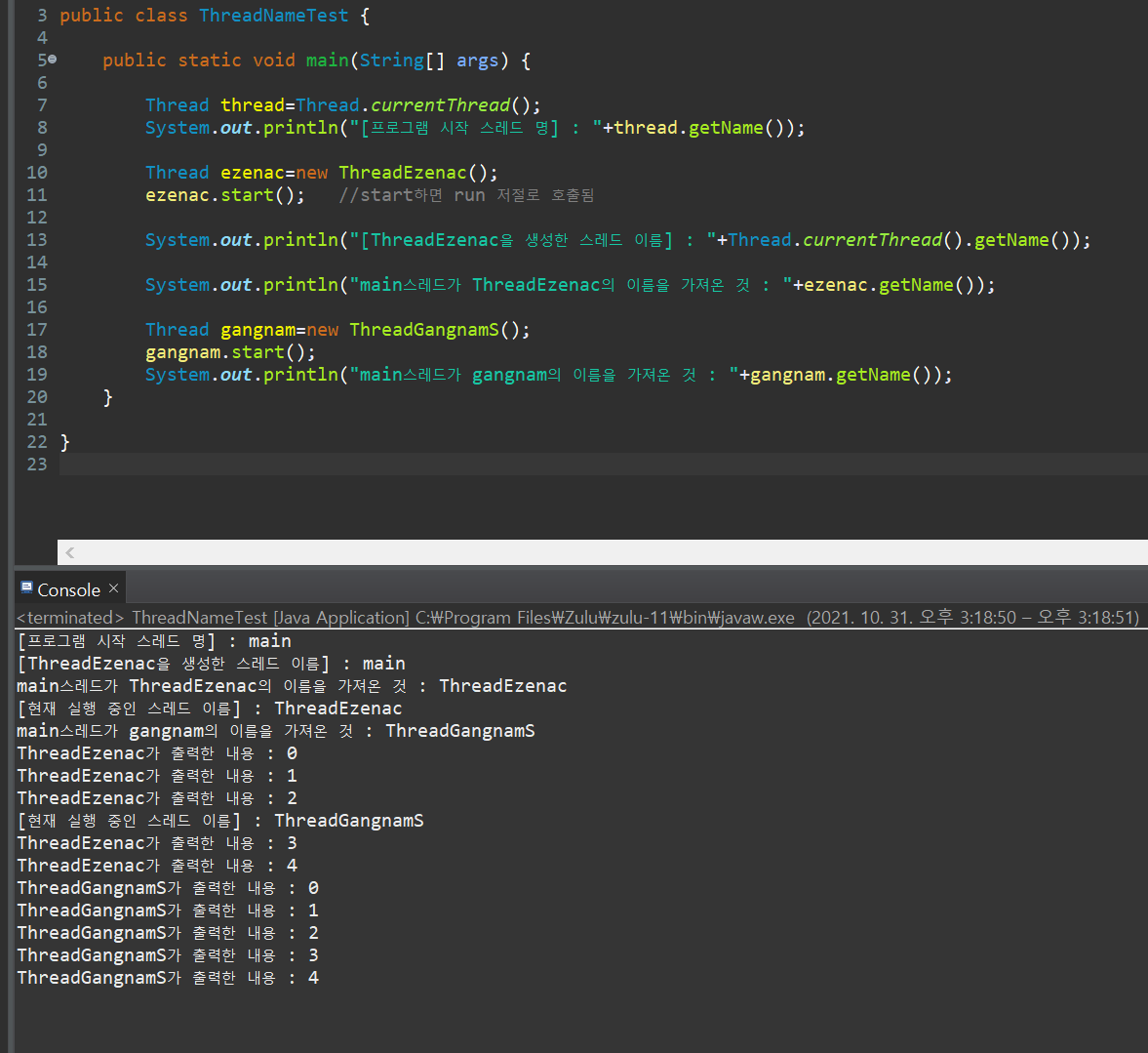 4)코드 실행하는 현재 실행 중인 스레드 객체의 참조 얻기