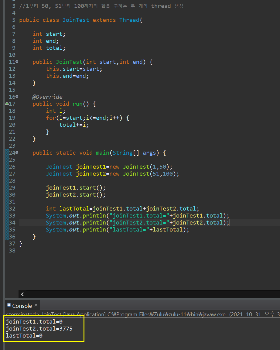 -join( )함수를 호출한 Thread가 not-runnable 상태가 됨.