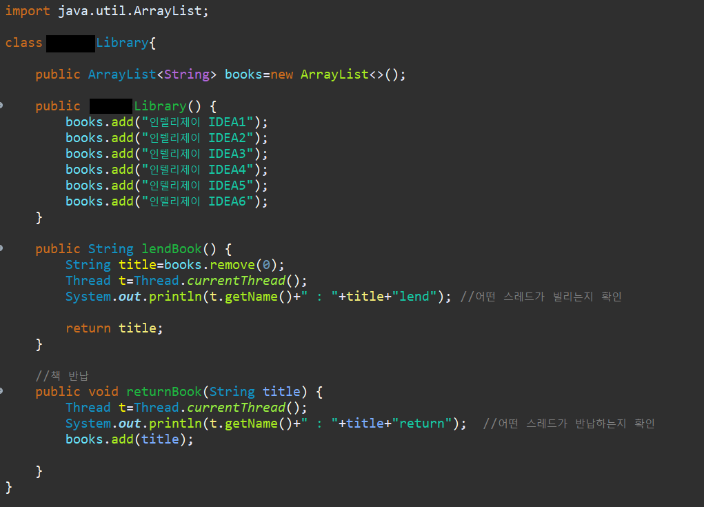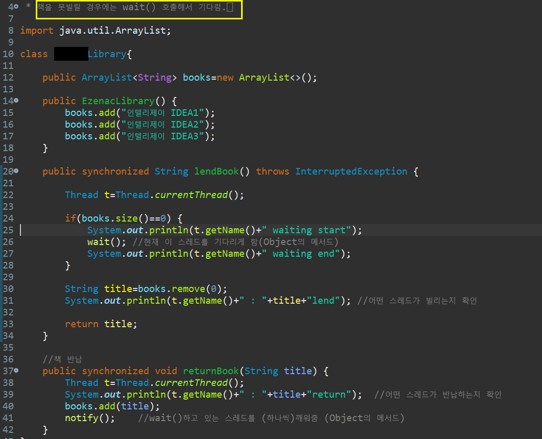 책을 못빌릴 경우에는 wait() 호출해서 기다림.