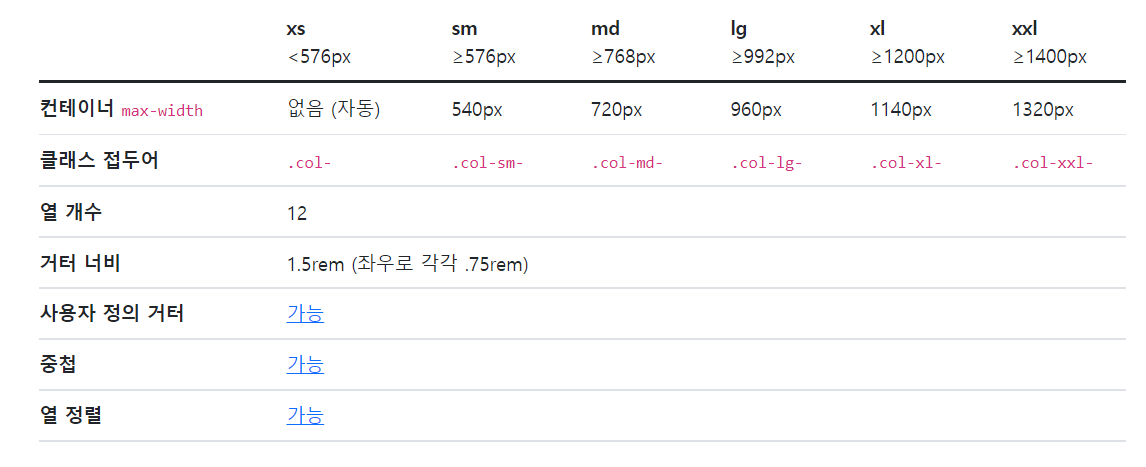- size 안에는 sm,md,lg,xl,xxl 중의 하나가(미디어 사이즈) 들어감.