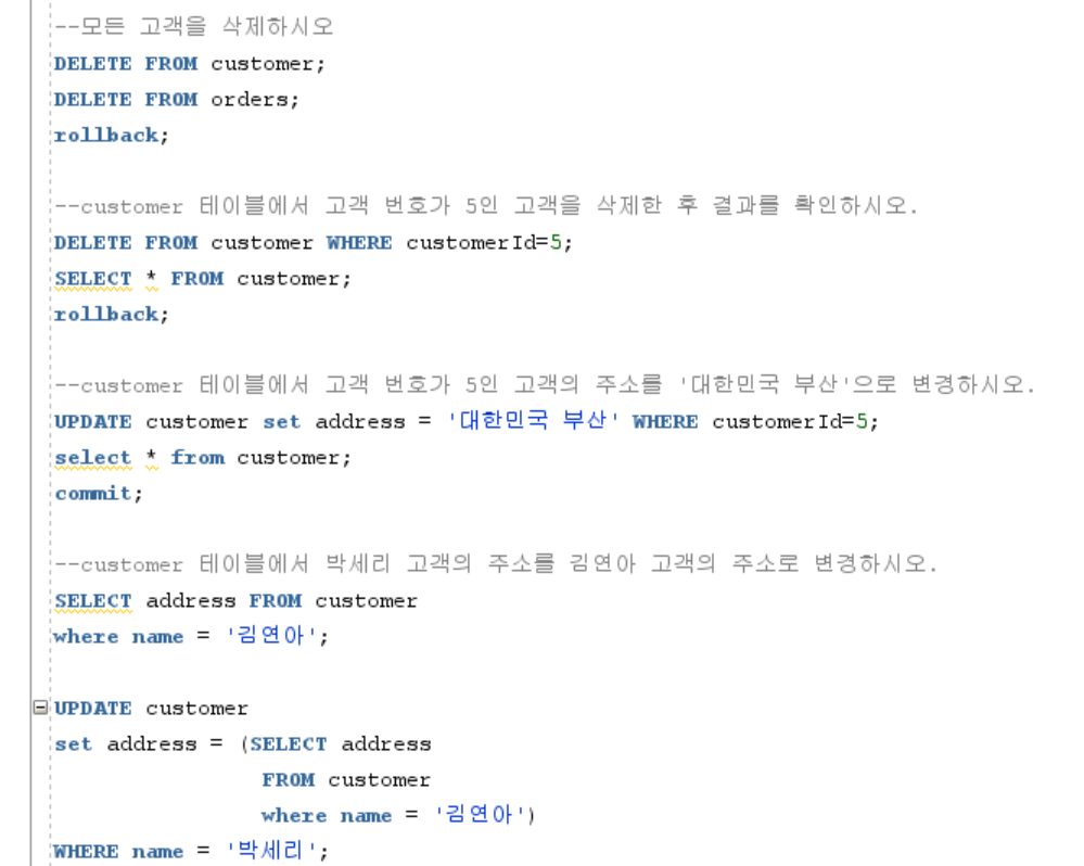 -DELETE FROM student WHERE dept_name in() ==>여러 개의 조건