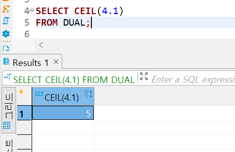 2)CEIL(숫자) : 숫자보다 크거나 같은 최소의 정수