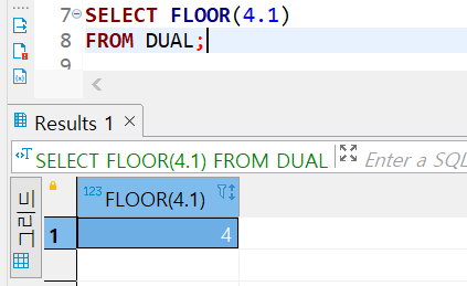 3)FLOOR(숫자) : 숫자보다 작거나 같은 최소의 정수