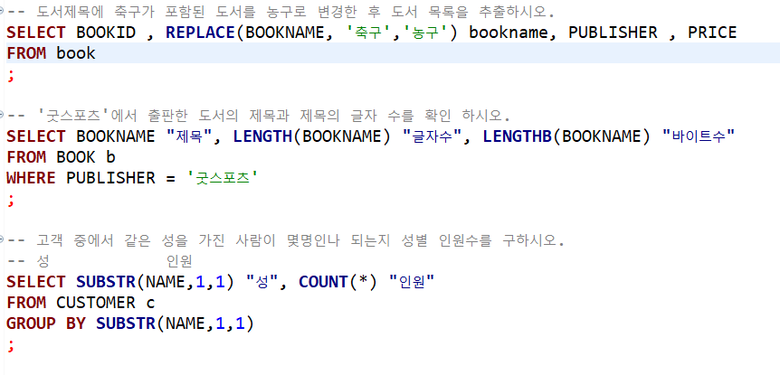 1. SQL 함수는 DBMS가 제공하는 내장 함수(built-in function)와