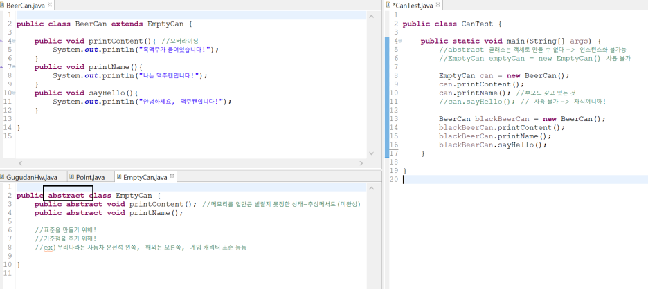 EmptyCan 클래스에서 abstract를 선언하지 않았다면 CanTest 클래스에서