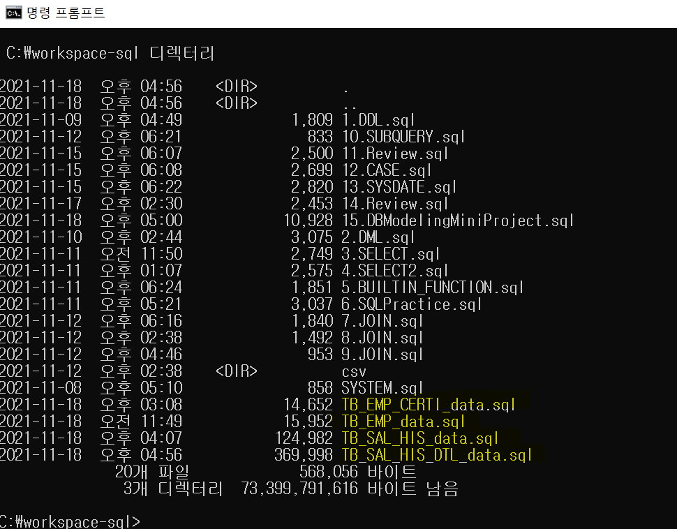 (TB_EMP_CERTI_data.sql , TB_EMP_data.sql, TB_SAL_HIS_data.sql, TB_SAL_HIS_DTL_data.sql) 첨부 파일 참고