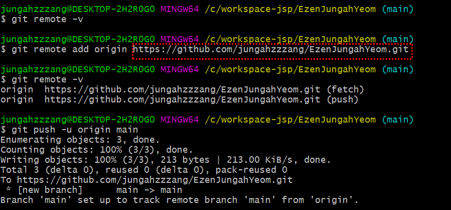 remote 명령어는 git remote add origin [링크]