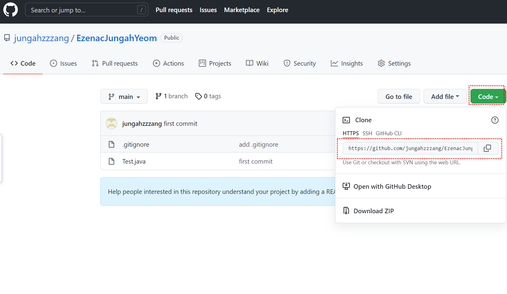 1. 내 깃허브에 remote repository 를 만들어준다.