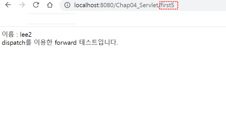 RequestDispatcher dispatcher = request.getRequestDispatcher("second5?name=lee2");
