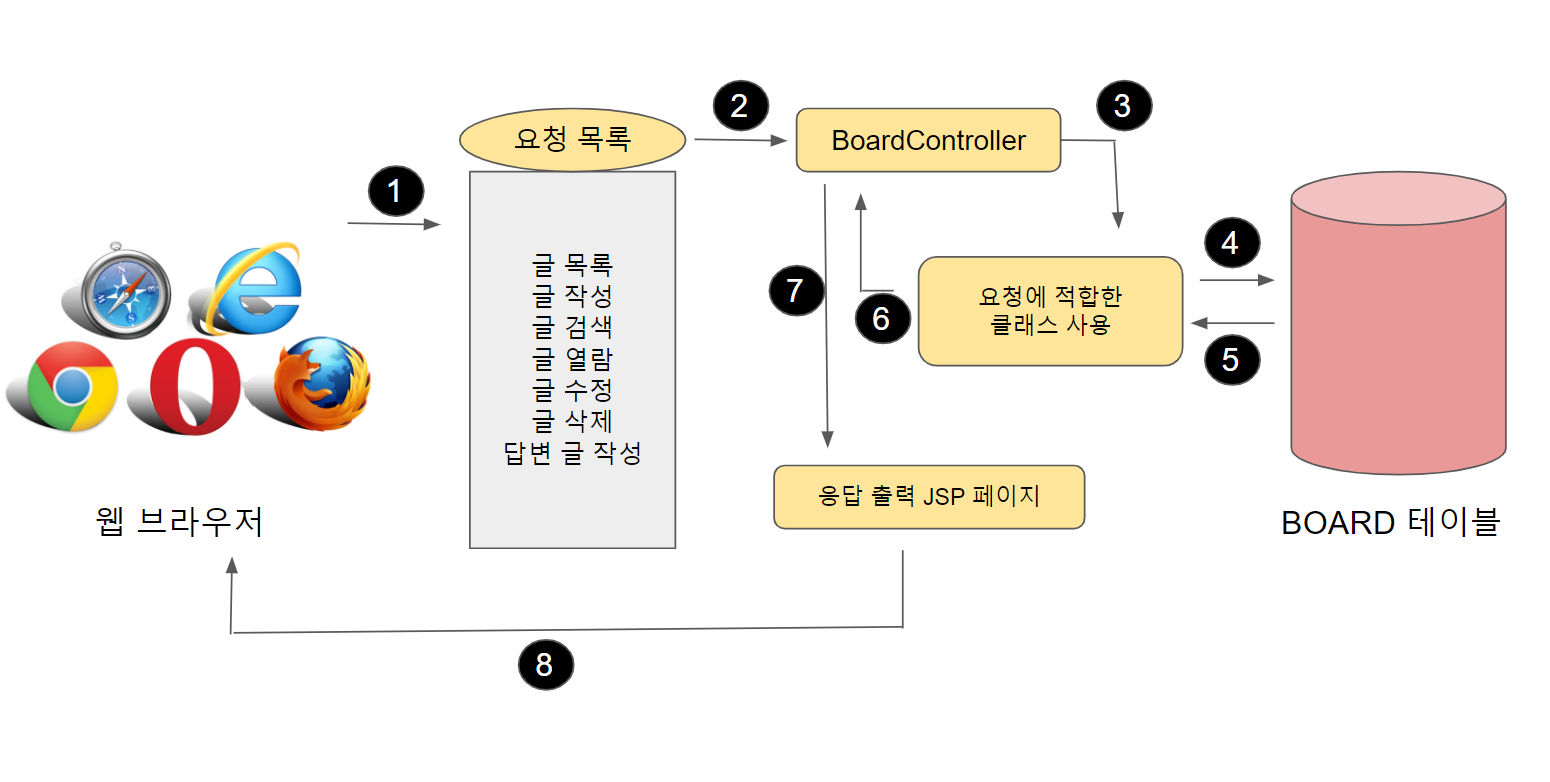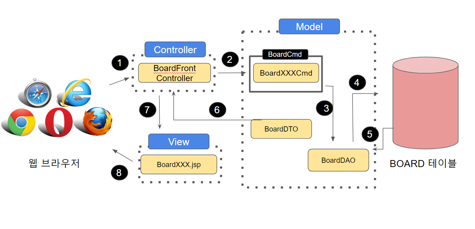 | BoardReplyFormCmd | 게시판 답글 쓰기 폼 JSP 페이지 호출 |