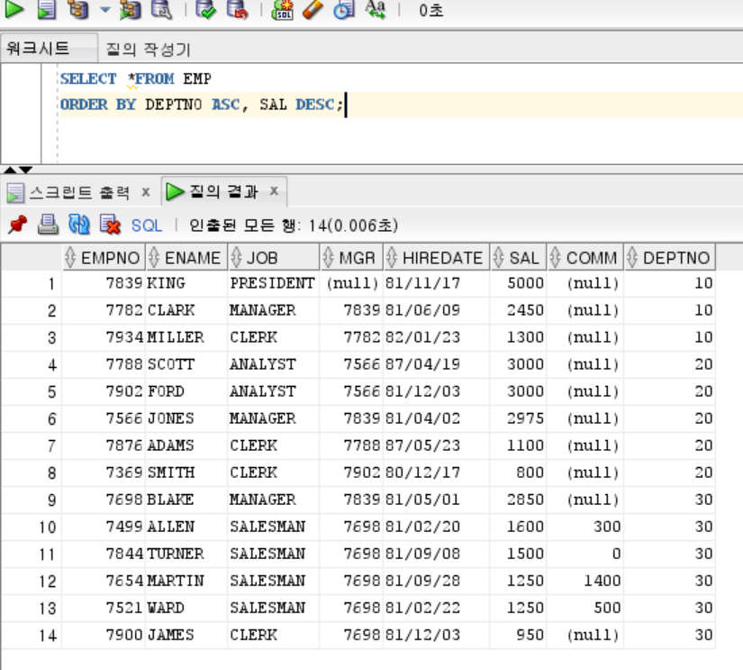 이렇게 오름차순, 내림차순을 동시에 같이 사용할 수도 있다.