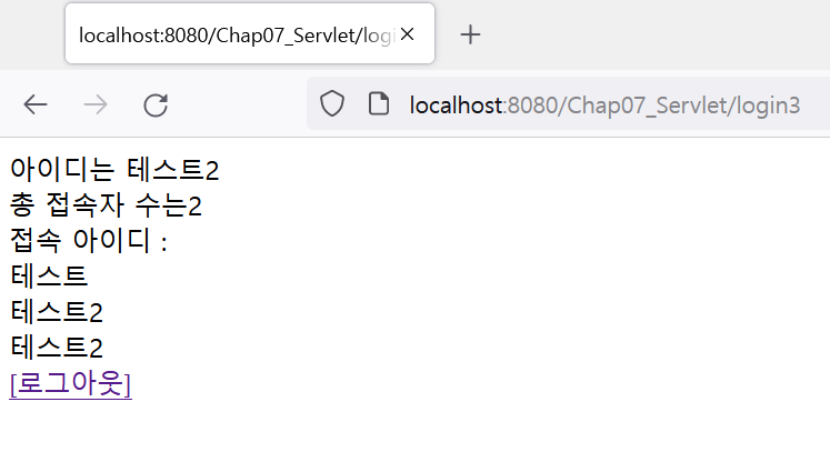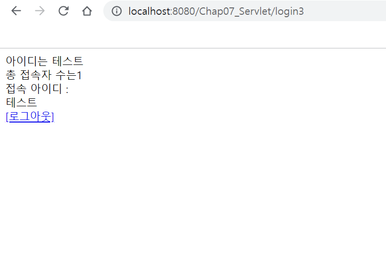 //로그아웃 클릭 시 서블릿 logout으로 접속자 ID를 전송해 로그아웃함.