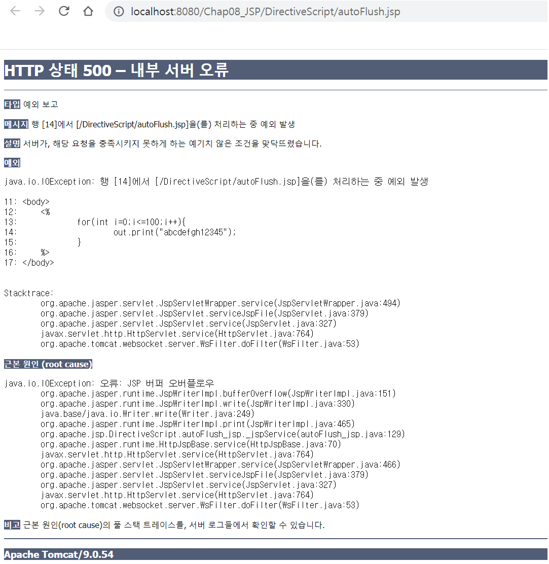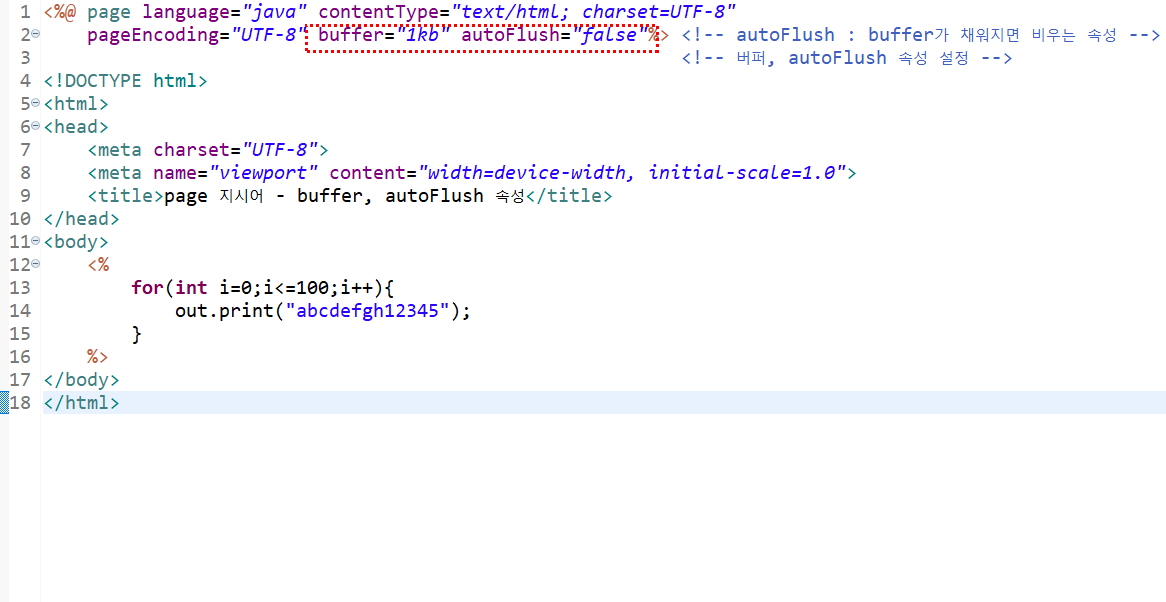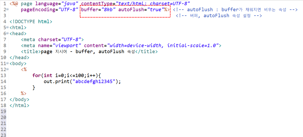 buffer = "8kb" autoFlush = "true" -> buffer가 채워지고 자동으로 비워지기 때문에 정상적으로 실행