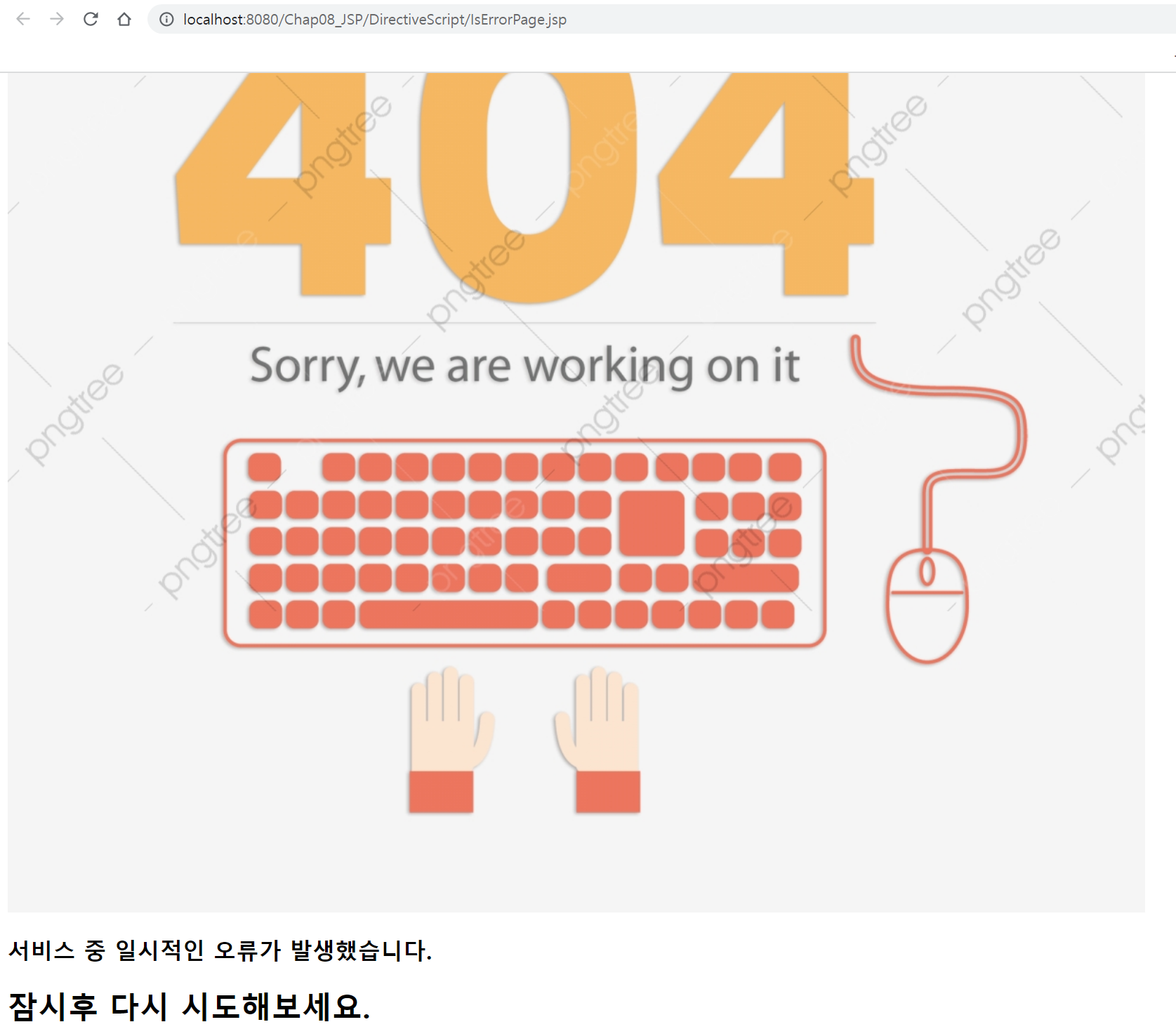 =>에러가 발생했을 때 출력할 페이지를 따로 지정. (이미지 태그 사용)