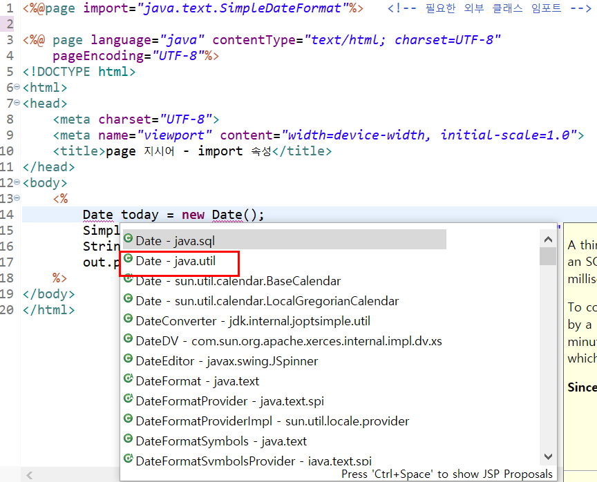 1)import : 페이지에서 사용할 자바 패키지와 클래스 지정