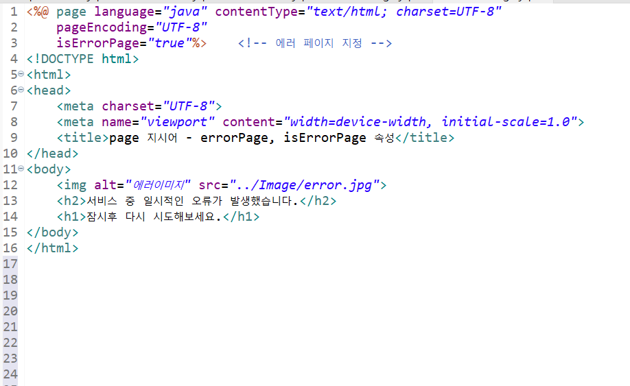 3)isErrorPage : 해당 페이지가 에러를 처리할지 여부를 지정함.