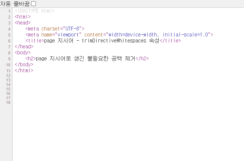 4)trimDirectiveWhitespaces : 지시어 선언으로 공백을 제거할지 여부 지정