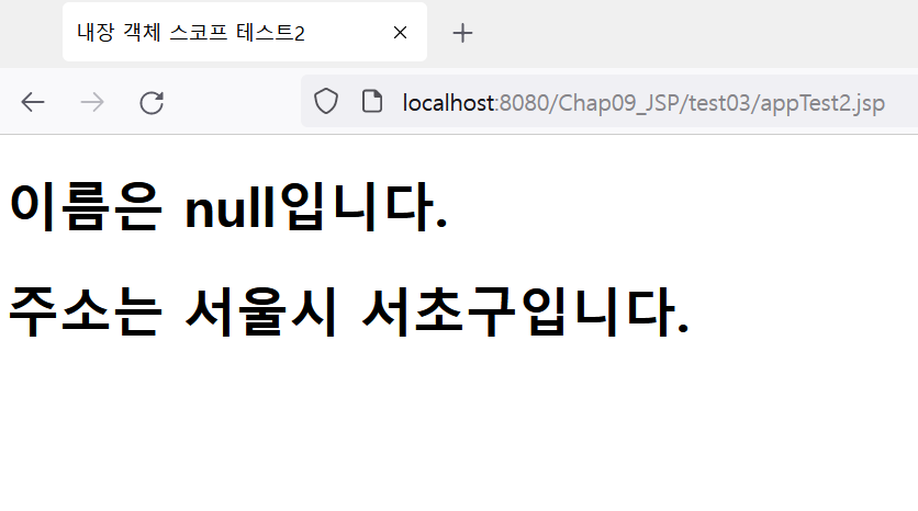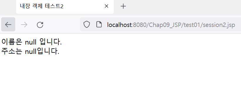 다른 브라우저에서 실행하면 주소 null값으로 나옴. (세션이기 때문에)