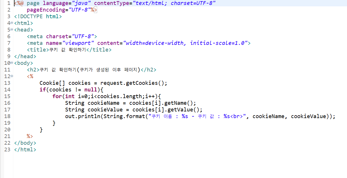 Cookie[] cookies = request.getCookies(); //클라이언트가 보내온 쿠키 목록을 받아서