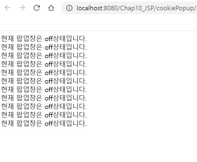 Cookie cookie = new Cookie("PopupClose", "off"); //쿠키 생성