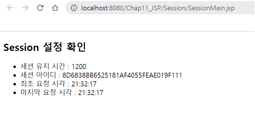 <li>세션 유지 시간 : <%=session.getMaxInactiveInterval() %></li>