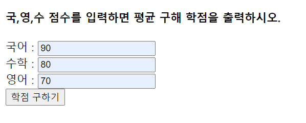 <h4>국,영,수 점수를 입력하면 평균 구해 학점을 출력하시오.</h4>