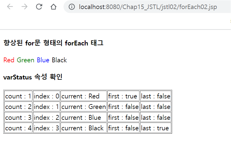 <h4>varStatus 속성 확인하기</h4>